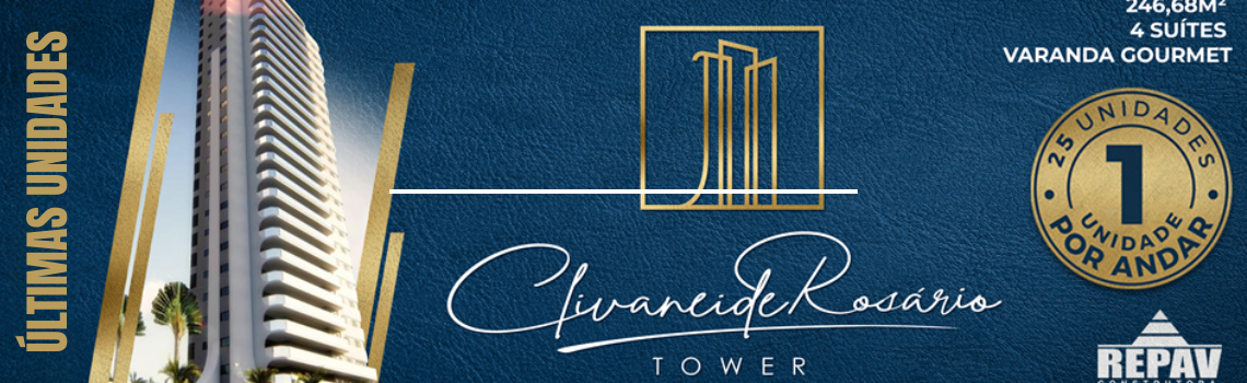 Apartamentos com 246,68m² de área, 25 unidades e 1 por andar, com 4 suítes (sendo uma master com closet e varanda), varanda gourmet e muito mais, na melhor localização de Mossoró!